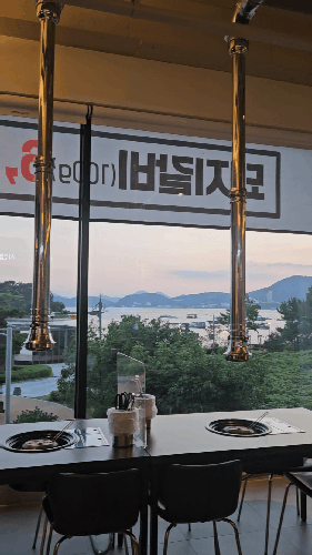 바다와 두력도가 보이는 뷰맛집 여수 맛집 데이트 한돈 서임 숯불갈비