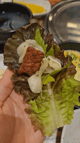 쌈싸서 더 야무지게 먹어줍니다 ㅎㅎㅎ