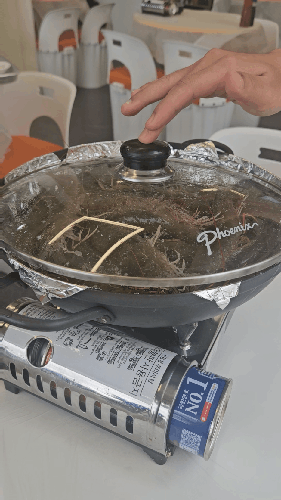 소금이 담긴 냄비에 넣어주시는데