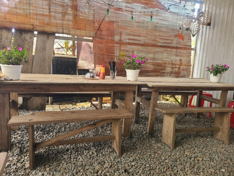 긴 나무테이블, 긴 의자
