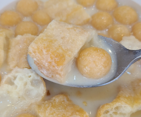따뜻~~~한 콩국에 적셔진 도너츠가